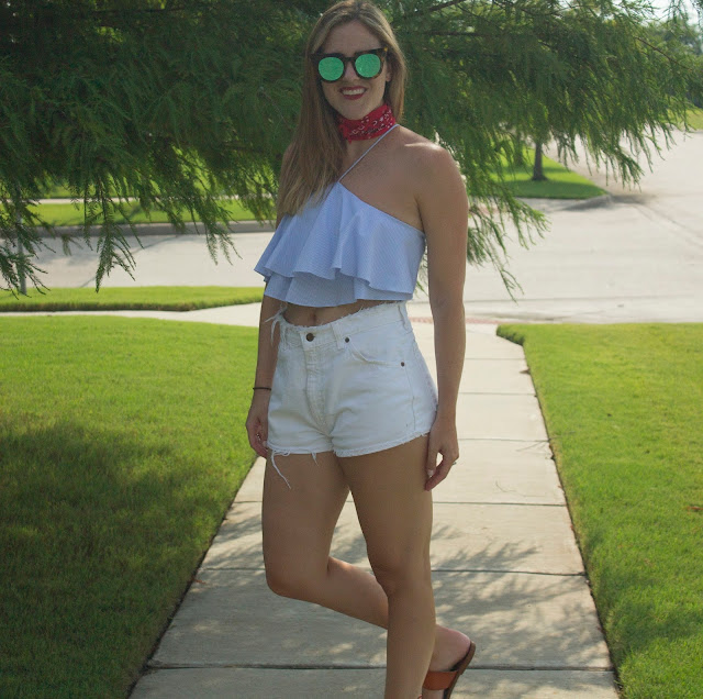 Top: Zara | Shorts: Vintage Levi (similar here) | Bandana: Target | Sunglasses: Le Specs